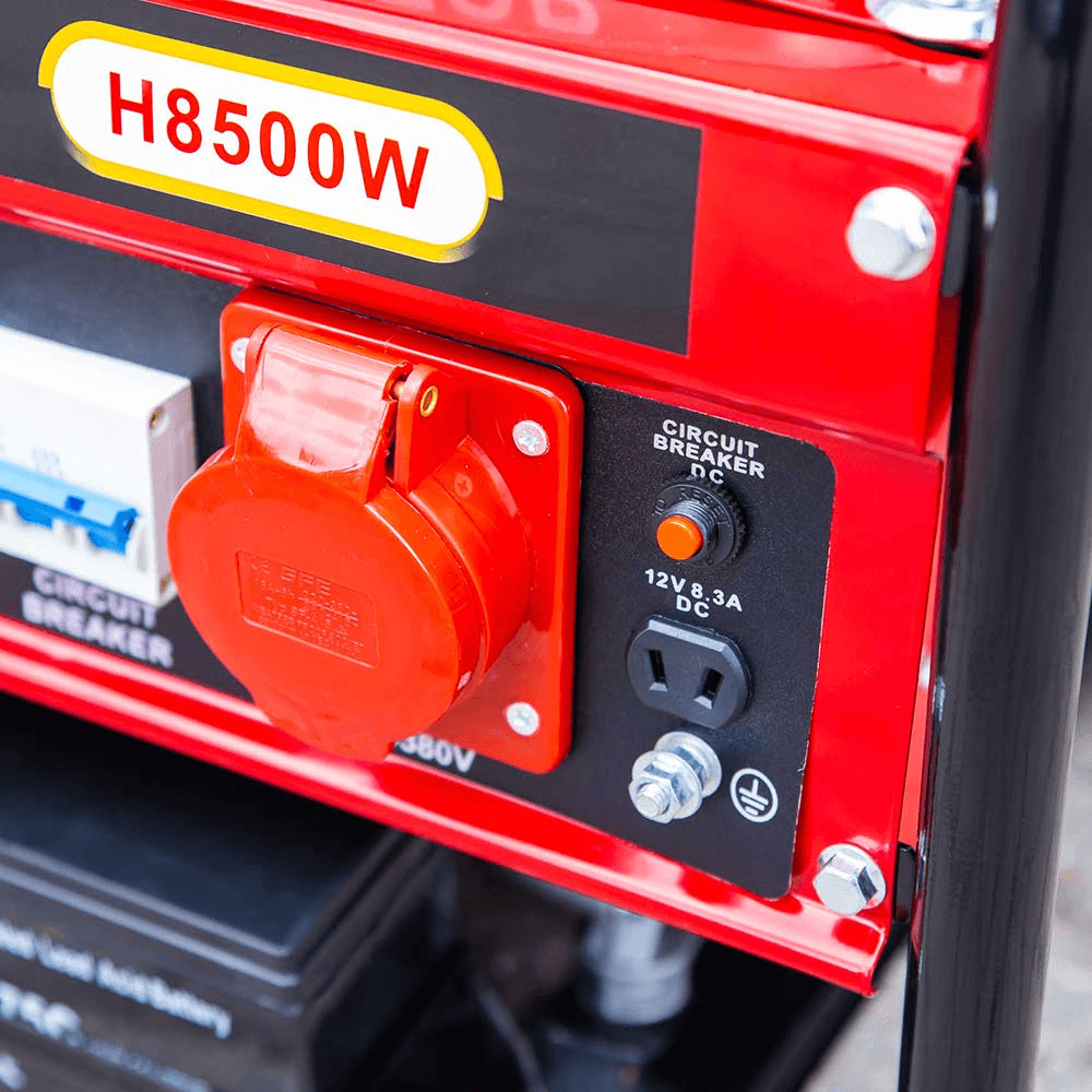Serbatoio benzina da 20 litri , avviamento elettrico. A differenza dei generatori trifase standard che possono fornire solo un terzo della loro potenza in monofase, questo generatore ha un comodo selettore per passare da una modalità all’altra. È come avere due (2) generatori in uno. Il generatore può fornire diversi livelli di potenza a seconda della fase scelta; in modalità monofase può erogare fino a 8.0kW (potenza massima 8.5kW) , mentre impostando l’uscita a 400v può erogare fino a 8.5kW (potenza massima 8.5kW).